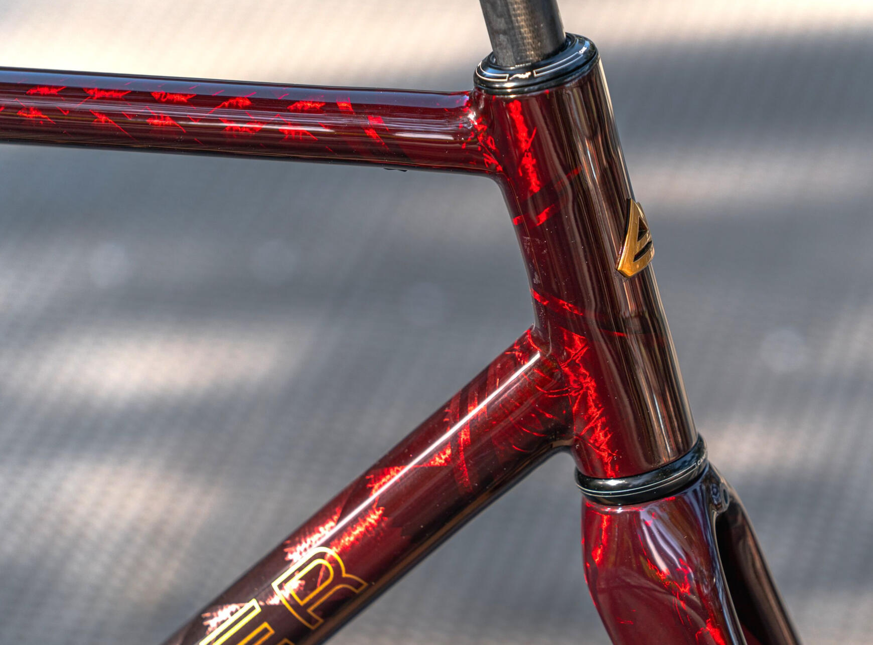 Our Fast road custom layup shows off the craftsmanship of the layered carbon in a smooth clean joint.