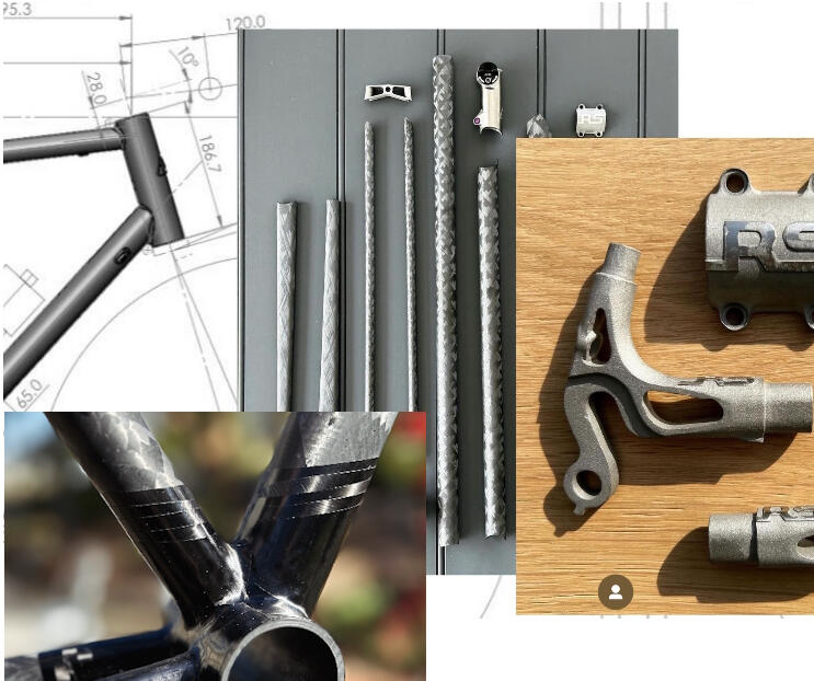 Each individual component is designed and developed in house and is bespoke to your bicycle.Our tubing is custom and specified to meet the particular riding style of the customer. This type of tubing is stiff under torsion for pedalling efficiency and resisting twisting forces, while retaining compliance for a smoother ride quality.Each joint is reinforced with specifically designed plies of carbon fiber which are meticulously laid up by hand, compacted and oven cured in house.
